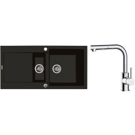 1. Oltens Gravan Fregadero de granito de 1,5 cubetas con escurridor 100x50 cm negro mate 72300300