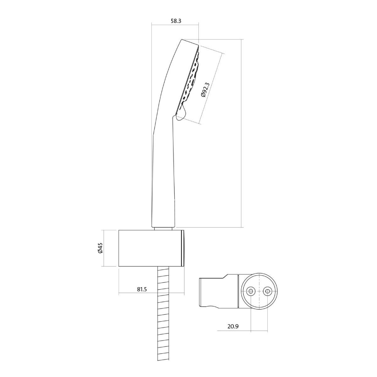 - mango de ducha con ángulo de inclinación ajustable