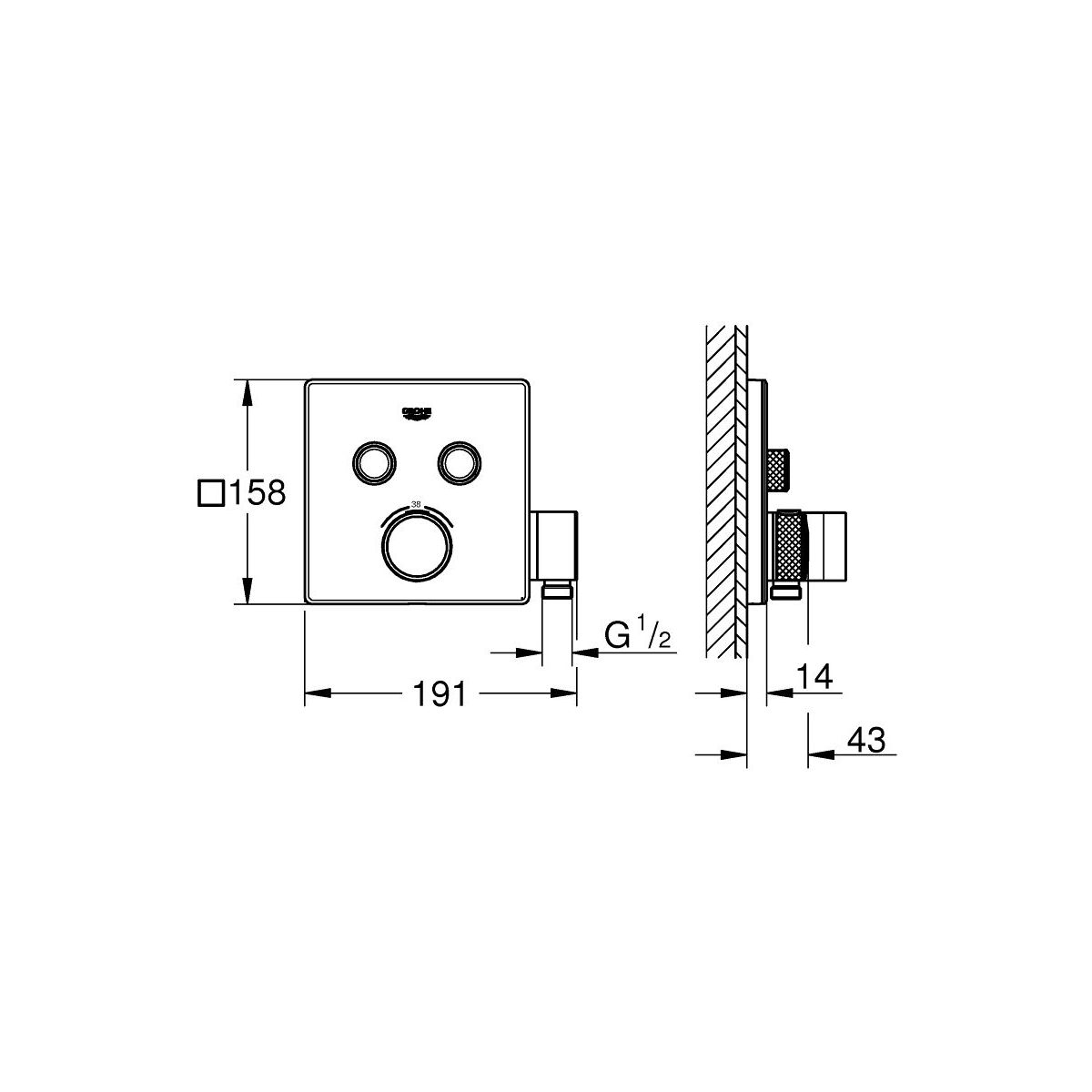 - escudo de pared metálico con Grohe QuickFix (junta de escudo oculta y fijación por husillo) Mando de 6