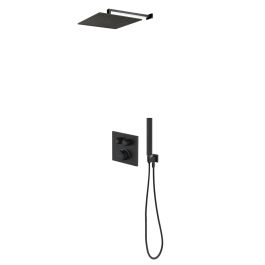 Mezclador termostático empotrado de bañera y ducha Oltens Onega (S) negro mate 34602300El mezclador termostático empotrado Onega de Oltens acciona 2 salidas de agua mediante botones de función. Los botones también disponen de una función adicional de control del caudal de agua para que pueda reducir el consumo de agua. Los usuarios pueden seleccionar el efecto de ducha deseado simplemente pulsando el botón de control y aumentando/disminuyendo el caudal de agua. Pulsando ambos botones, es posible disfrutar de una ducha con ambas funciones al mismo tiempo (por ejemplo, ducha efecto lluvia y teleducha). Gracias al cabezal de ducha termostático de la marca Sedal utilizado, los usuarios pueden disfrutar de la ducha a una temperatura constante del agua. La gama de griferías Onega incluye diseños de tapa frontal redonda y cuadrada, que los usuarios pueden elegir para adaptarla mejor a su cuarto de baño.