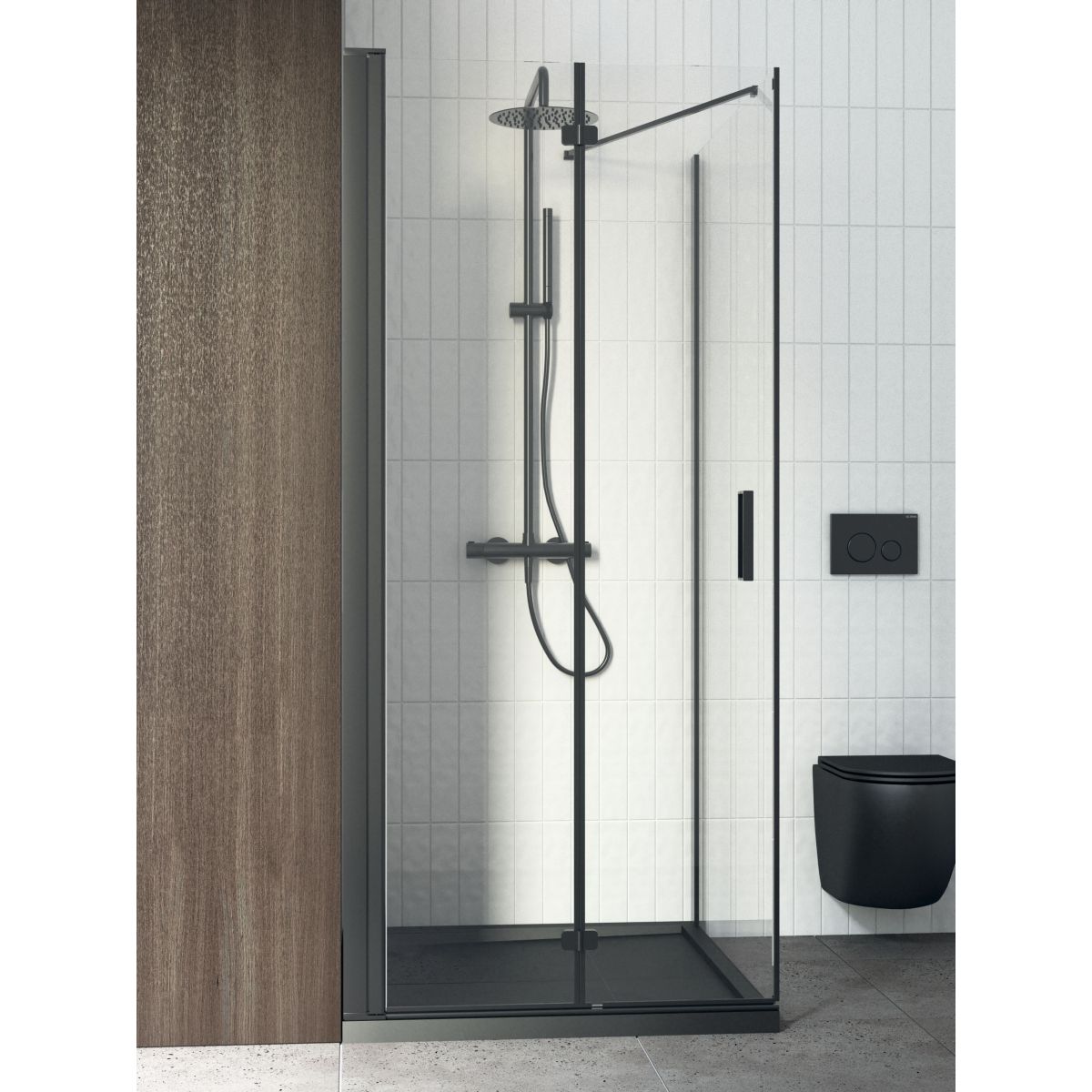 Oltens Hallan puerta de ducha 80 cm negro mate/vidrio transparente 21200300