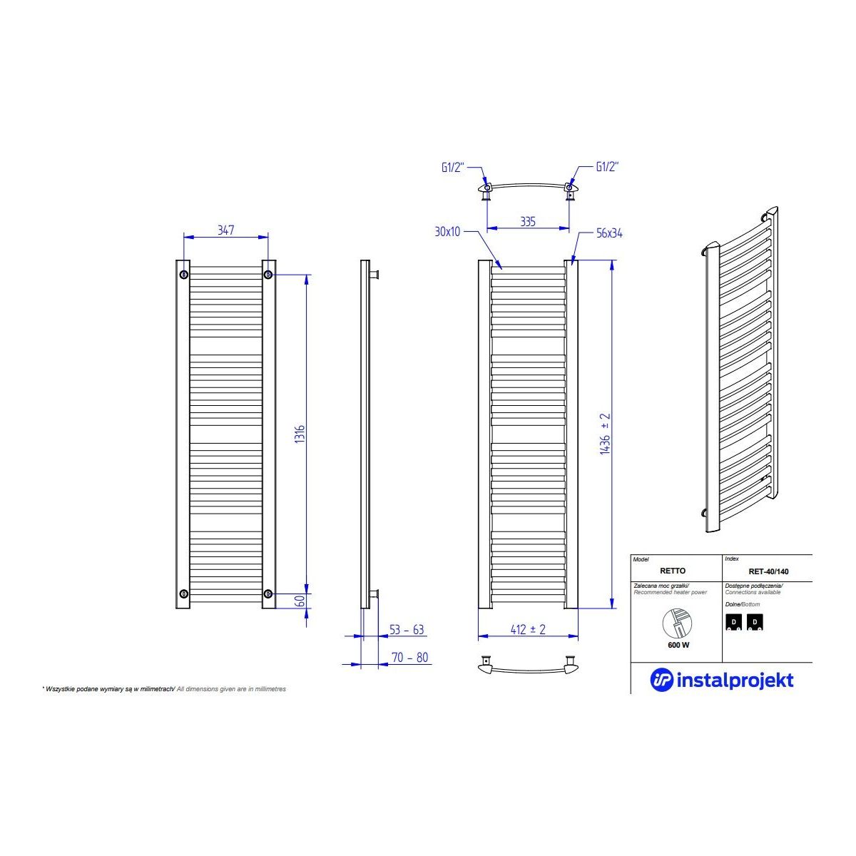 Juego de válvulas específico para radiadores RETTO de Instal Projekt, adaptado para su instalación en sistemas de alimentación por la parte inferior. Para la alimentación en el colector derecho debe instalarse la válvula izquierda, mientras que para la alimentación en el colector izquierdo debe instalarse la válvula derecha. Monte el calentador eléctrico en el colector de retorno a la instalación. El conjunto permite un control preciso de la temperatura y un funcionamiento fiable a altas temperaturas y presiones.