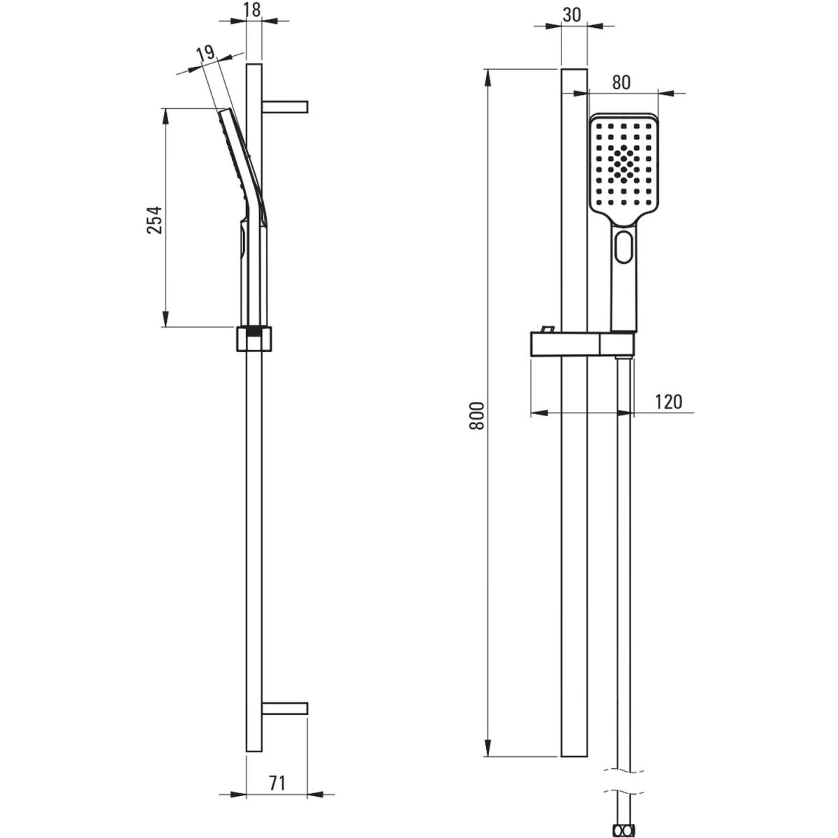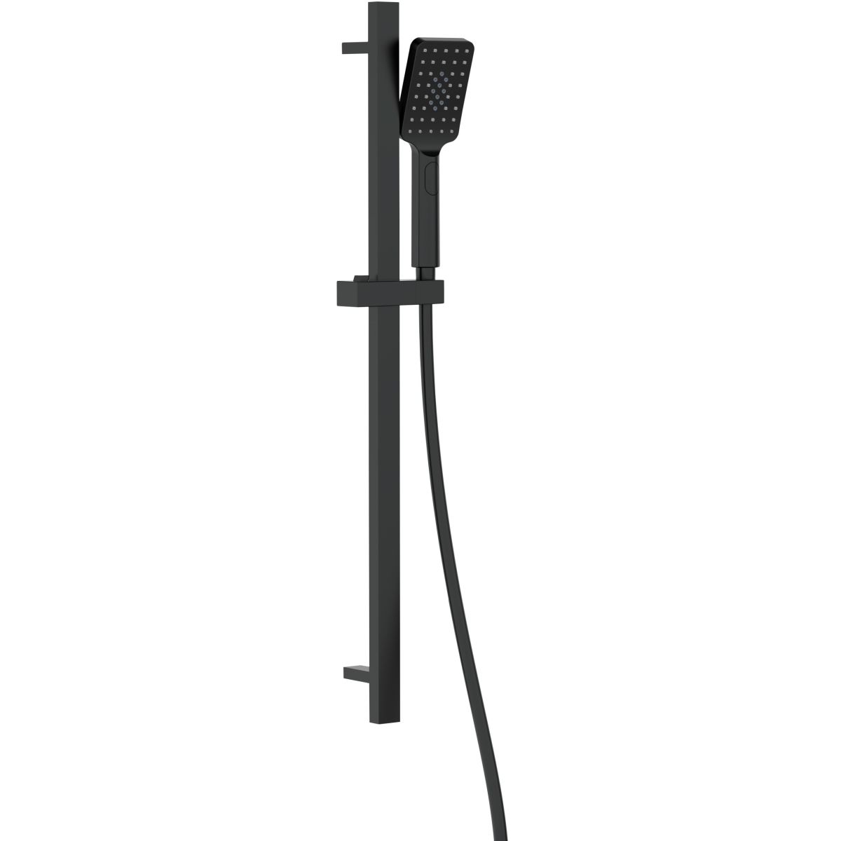 El conjunto de ducha consta de una barra de acero, un mango de 3 funciones y una manguera de doble trenzado. El mango es ajustable y permite fijar el ángulo preciso del mango. Además, el mango está equipado con un sistema antical, que facilita la limpieza del producto. La manguera de ducha tiene un sistema antitorsión para evitar que se retuerza. Está equipado con un reductor de caudal de agua, que reduce significativamente el consumo de agua. Todo el producto está acabado en un elegante negro mate.