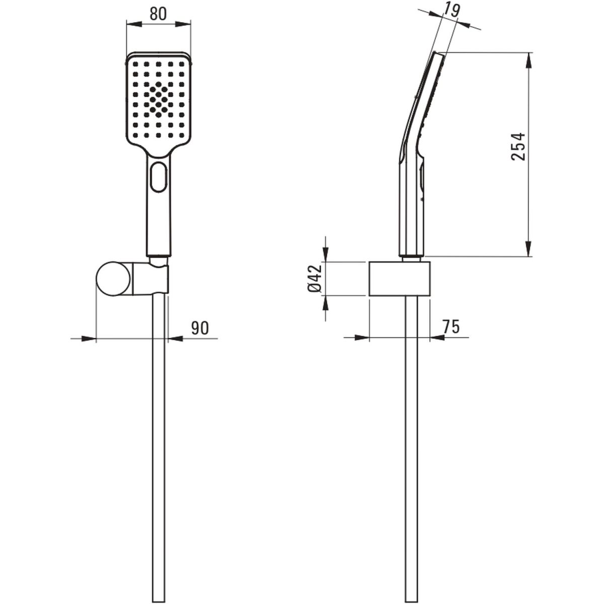 - flexo de ducha antitorsión de 150 cm de longitud fabricado en PVC y latón (extremos)