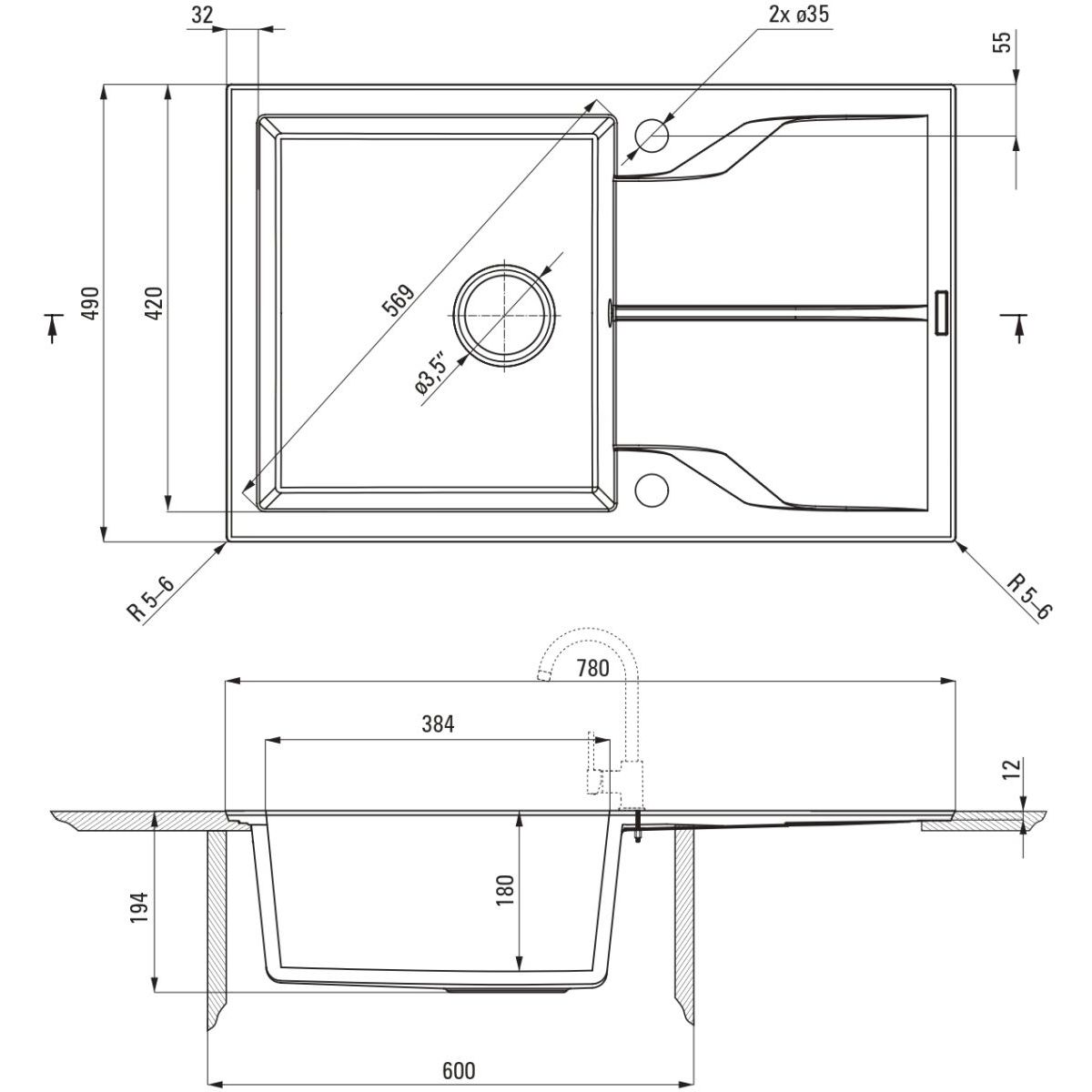 - fregadero reversible - instalación con cubeta a la izquierda o a la derecha