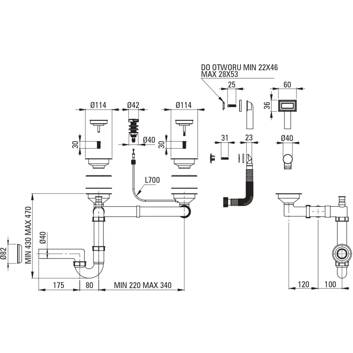 - sifón que ahorra espacio para, entre otras cosas, separar fácilmente los residuos