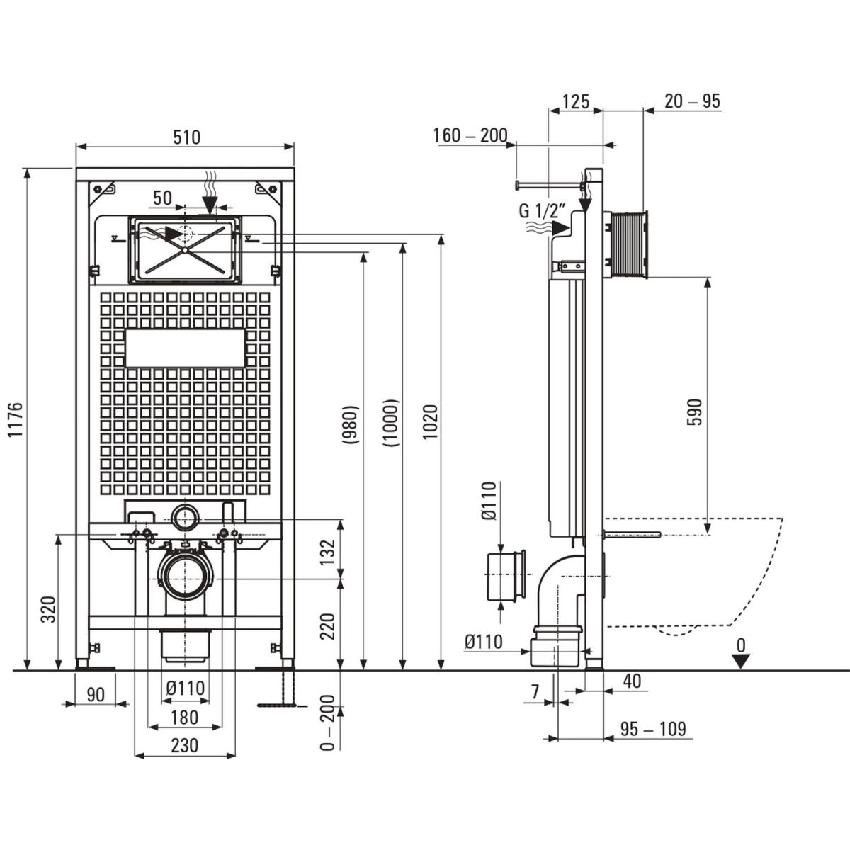 El juego de inodoro oculto consta de un elegante botón de control dorado, una taza sin reborde con asiento flotante y una alfombrilla insonorizante. La taza no tiene reborde y está libre de recovecos innecesarios donde pueda acumularse la suciedad. La amortiguación acústica aumenta el confort del usuario y la alfombrilla insonorizante nivela cualquier desnivel entre la baldosa y la taza del inodoro. Todo el conjunto está estabilizado por un marco de acero. El conjunto tiene un aspecto estético muy agradable y elegante.