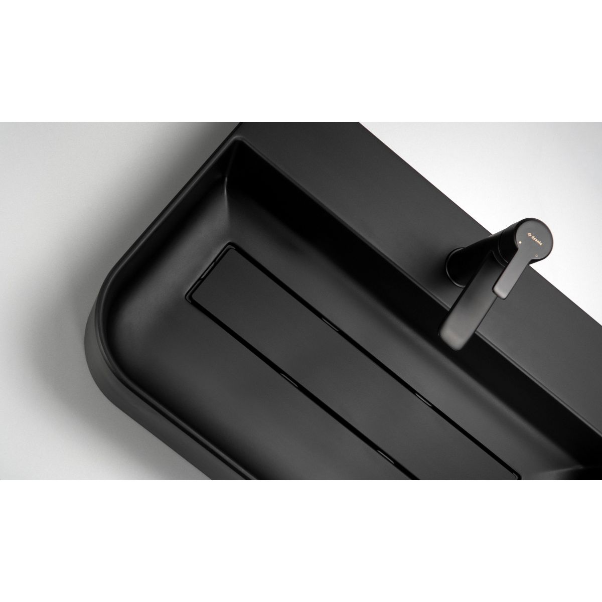 El lavabo de granito con rebosadero en nero se caracteriza por su diseño moderno y elegante. Presenta un borde curvado en la parte frontal, que le confiere un aspecto suave y estético y aumenta la comodidad de uso. Fabricado en granito Deante, es resistente a los impactos, al calor, a la decoloración y a los choques térmicos. Gracias a sus propiedades hidrófobas, repele las partículas de agua, lo que facilita su limpieza. La superficie del lavabo está enriquecida con iones de plata, que proporcionan un efecto antiséptico. El bisel del rebosadero, realizado precisamente en granito en tono nero, acentúa la elegancia y la coherencia de toda la forma. El profundo tono negro nero y la forma curvada combinan a la perfección con la grifería negra de formas redondeadas.