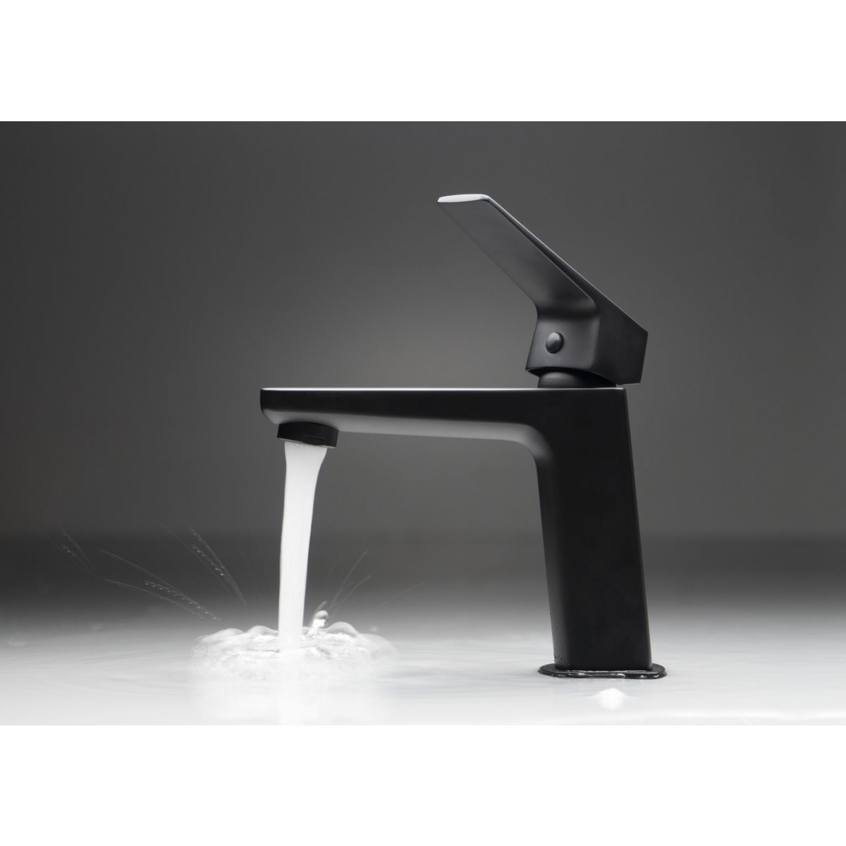 El mezclador de lavabo Blur está fabricado en latón duradero, lo que garantiza su longevidad y resistencia a la corrosión. El aireador integrado garantiza un caudal de agua eficiente, al tiempo que reduce el consumo de agua. El kit incluye mangueras de conexión y un manguito de montaje, para que la instalación sea sencilla y sin complicaciones. El acabado negro mate del grifo añade un toque moderno,