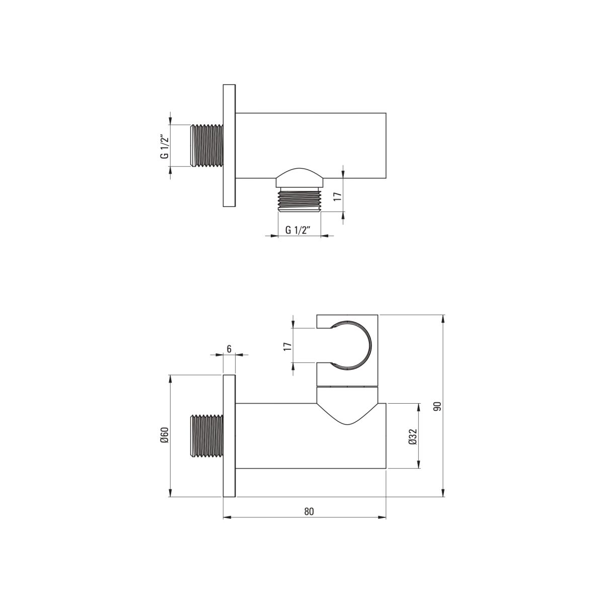 Características: conexión en ángulo con soporte