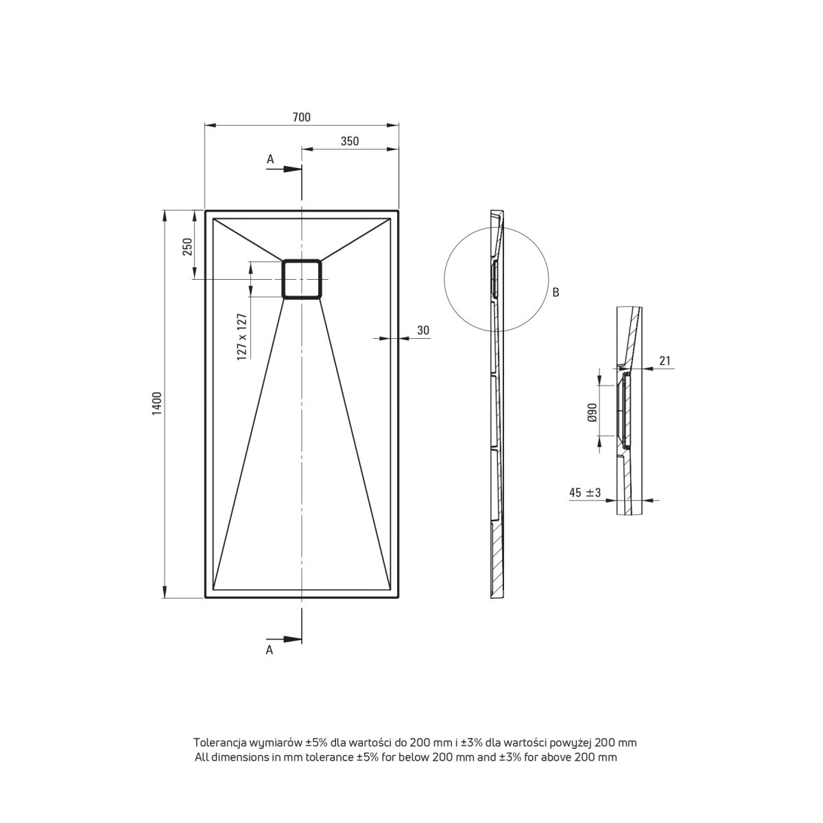 Elegante y moderno, el plato de ducha rectangular Correo de 140 cm por 70 cm de profundidad Nero es sinónimo de estilo y durabilidad. Fabricado en compuesto de granito, presenta una excepcional resistencia a los impactos, al choque térmico y a la decoloración, lo que lo convierte en la elección perfecta para cualquier cuarto de baño. El plato de ducha puede instalarse a ras de suelo (sobre los azulejos), directamente sobre la solera o apoyado sobre un material estructural. El plato de ducha está enriquecido con iones de plata, que le confieren propiedades antisépticas, protegiéndolo contra bacterias y hongos. Además, su superficie es antideslizante, lo que aumenta la seguridad de uso. Un producto polaco de la más alta calidad.