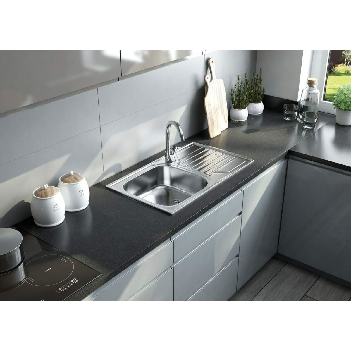 El fregadero Doppio tiene una cubeta y un escurridor grande y decorativo. Está fabricado en acero, que se caracteriza por sus propiedades antisépticas naturales. El acabado satinado es suave al tacto y aporta un toque chic y elegante a la cocina. Se incluye un tapón manual en acabado cromado.