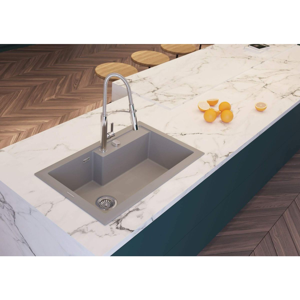 El fregadero de cocina de granito Eridan de Deante con una cubeta animará a la perfección cualquier interior. Lo hará más agradable a la vista y más elegante. También tiene la ventaja de su alta calidad y durabilidad. El granito contribuye a que la superficie de este modelo no se vea afectada tan fácilmente por factores externos. El modelo es resistente a la decoloración, los olores, los impactos, las altas temperaturas y los choques térmicos. También disfrutará de la bonita apariencia del fregadero gracias al cuidado regular con preparados específicos de la gama Deante. También dispone de un tapón automático que le permitirá abrir y cerrar el desagüe sin tener que meter la mano en la cubeta. Hay un práctico rebosadero en la cubeta, y el conjunto se completa con un sifón que ahorra espacio en el mueble Space Saver con conexión para lavavajillas.