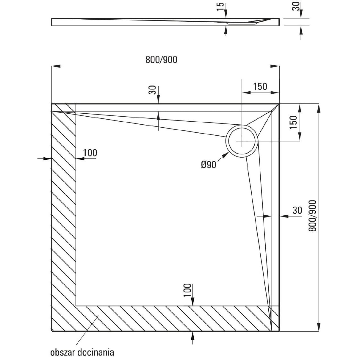 El plato de ducha acrílico cuadrado está fabricado con la tecnología Solid Plus. El plato de ducha se puede cortar a medida y se puede instalar sin umbral, con una transición suave a los azulejos. Su superficie tiene propiedades antibacterianas y antialérgicas y es fácil de limpiar. Además, la capa impermeable del plato de ducha lo protege contra la formación de hongos y moho.