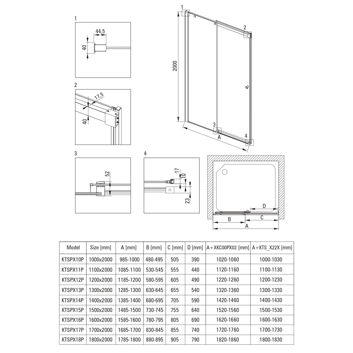- montaje: en nicho o combinable con el sistema KTS walk-in