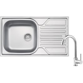 El fregadero de acero es un modelo reversible y puede instalarse con escurridor a la izquierda o a la derecha. El fregadero está equipado con grifería y sifón. El grifo monomando Luno es un modelo monomando de latón y acero inoxidable de alta calidad. Se instala rápida y fácilmente, sobre manguitos. El mezclador está equipado con un aireador que airea el flujo de agua, reduciendo significativamente el consumo de agua. El caño móvil en forma de U permite llenar de agua sin problemas incluso los recipientes altos. El mezclador está acabado en elegante cromo brillante.