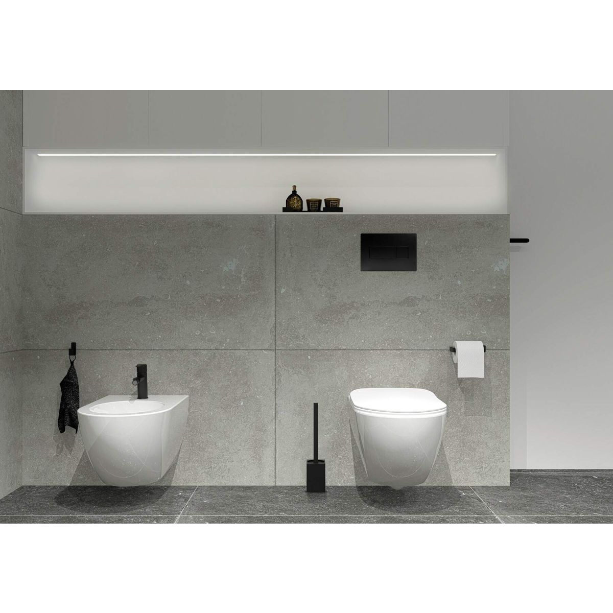 El portarrollos de papel higiénico de la galardonada colección Mokko es un accesorio moderno, minimalista y, por tanto, sencillo y funcional, que encajará perfectamente en los espacios de baños y salones de baño contemporáneos. Fabricado en acero de 2 mm, el portarrollos de pared, además de su diseño minimalista y su ergonomía, también se caracteriza por su mano de obra de alta calidad, su cuidadoso acabado y su hermoso tono negro intenso. Los accesorios de color negro satinado de la línea Nero armonizan especialmente bien con griferías negras, azulejos lisos de baño y encimeras de madera o piedra. Los accesorios son perfectos para estancias de estilo industrial, escandinavo o minimalista.
