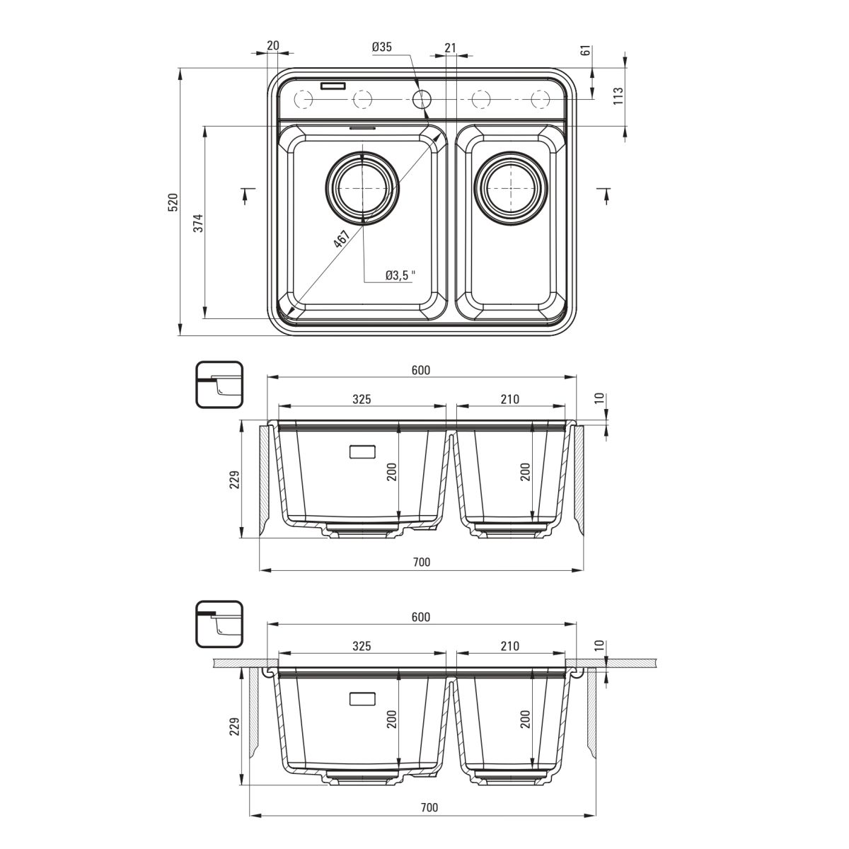 - tipo de rebosadero: redondo con tapa, rectangular con tapa