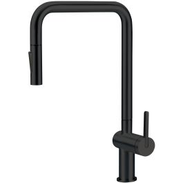 El mezclador de cocina Momi, fabricado en resistente acero inoxidable, se distingue por su elegante caño rectangular. Está equipado con un aireador, que airea el flujo de agua y reduce su consumo. El grifo tiene un caño extraíble para mayor comodidad durante el uso diario, lo que le permite llegar a zonas de difícil acceso con facilidad. El mando del grifo tiene dos modos de chorro de agua: aireado, ideal para el lavado estándar, y chorro de lluvia, perfecto para aclarar suavemente frutas y verduras. La grifería Momi está acabada en negro mate.