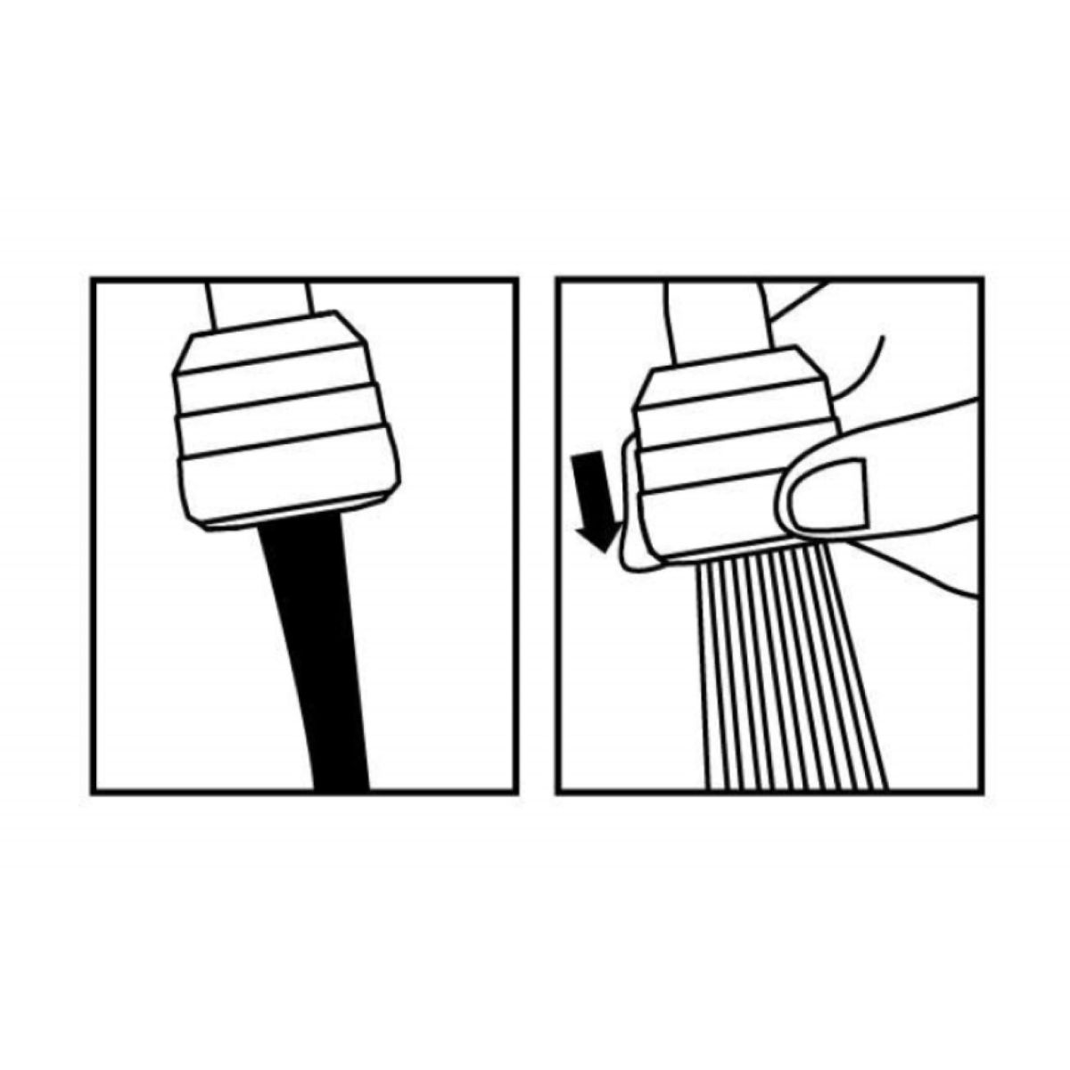 El aireador de doble función airea el chorro de agua y, lo que es más importante, reduce significativamente el consumo de agua. Dispone de dos modos: uno más estrecho y otro más lluvioso, útil, por ejemplo, para aclarar la vajilla o lavar las verduras. El cambio es rápido e intuitivo, basta con tirar hacia abajo del extremo de la brida. Además, se incluye una manguera de extensión flexible, que hará que lavar los platos sea aún más cómodo y el agua llegue a todos los rincones. Tras su uso, la manguera recupera su forma original.