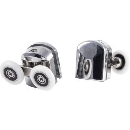 Los rodillos superiores de alta calidad están diseñados para puertas de ducha. Están fabricados de nailon, lo que hace que repelan el agua y la suciedad de los depósitos de jabón y cal. Esto facilita la limpieza del cuarto de baño. Los rodillos son dobles. Están diseñados para cristal de 5 mm. Tamaño FI 23 mm.
