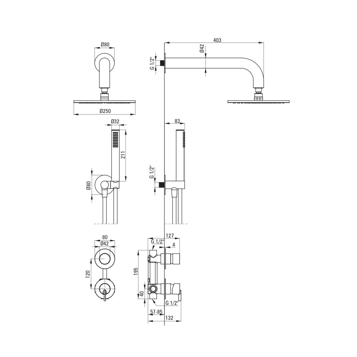 - teleducha monofunción (ducha de lluvia) con sistema antical y sistema de enfriamiento