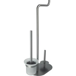 El soporte para papel de 3 funciones Silia es un accesorio extremadamente funcional que consta de un soporte para papel, un soporte de repuesto y una escobilla de inodoro. Fabricado en latón, es duradero y fácil de mantener limpio. El innovador acabado en titanio le dará un toque especial a su cuarto de baño.
