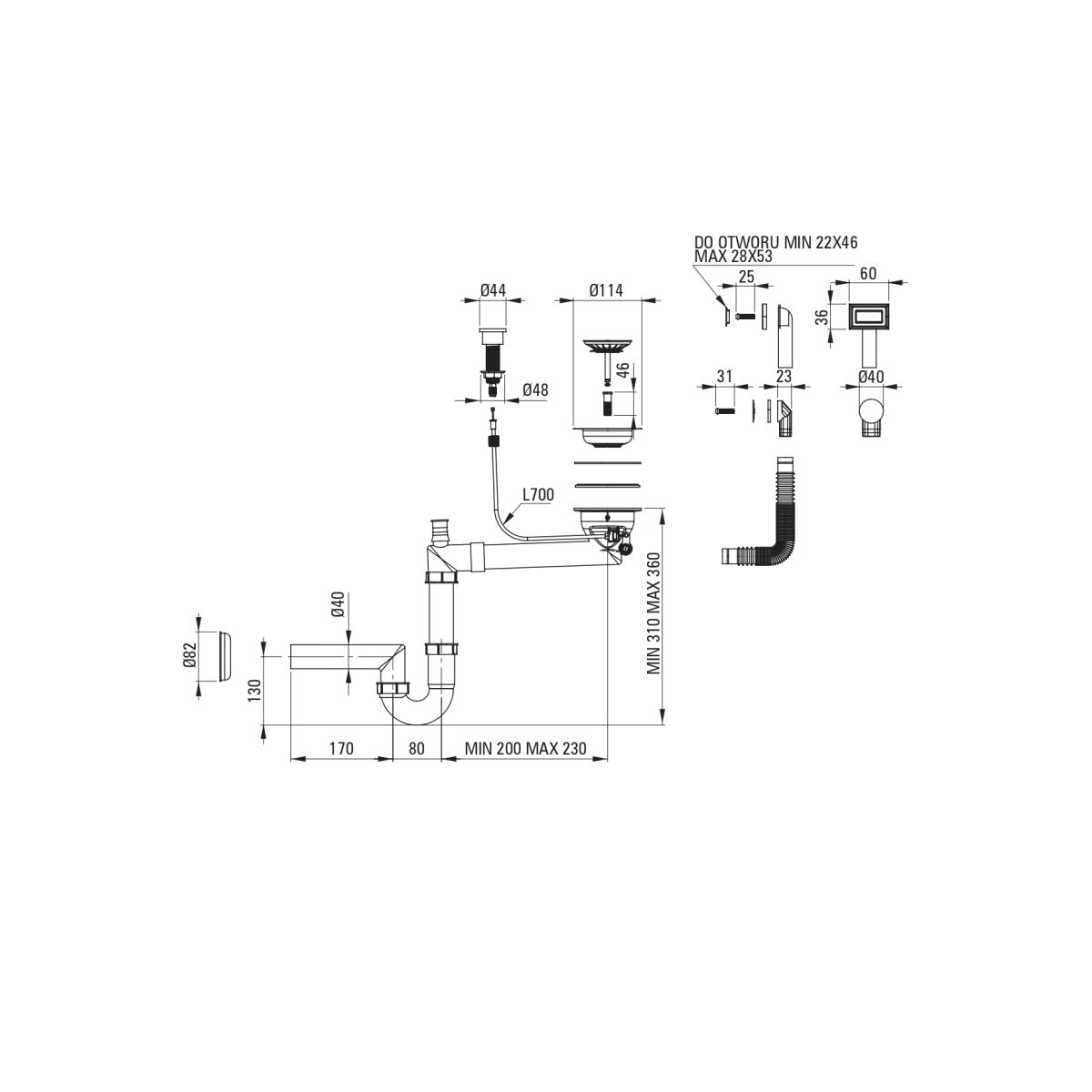Deante Space Saver sifón para fregadero ZXY9982