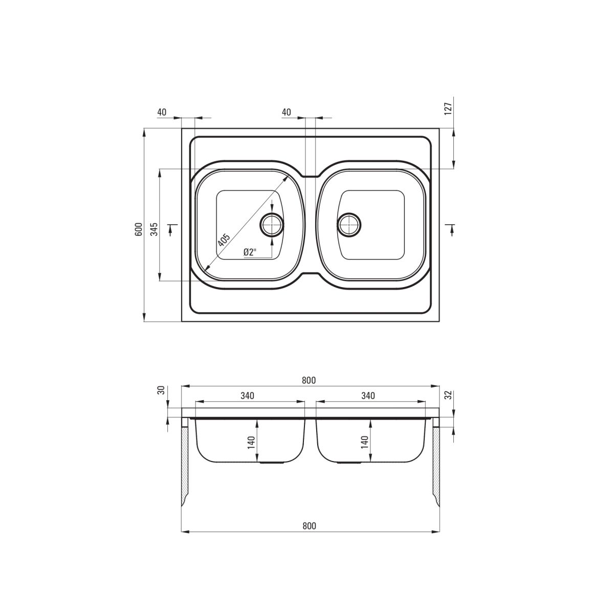 El fregadero Tango está fabricado en acero antiséptico, en acabado satinado. Tiene dos cubetas idénticas y un tapón manual incluido. El acero es resistente a los arañazos y no absorbe olores. Es un modelo superpuesto que queda muy bien tanto en cocinas clásicas como modernas.