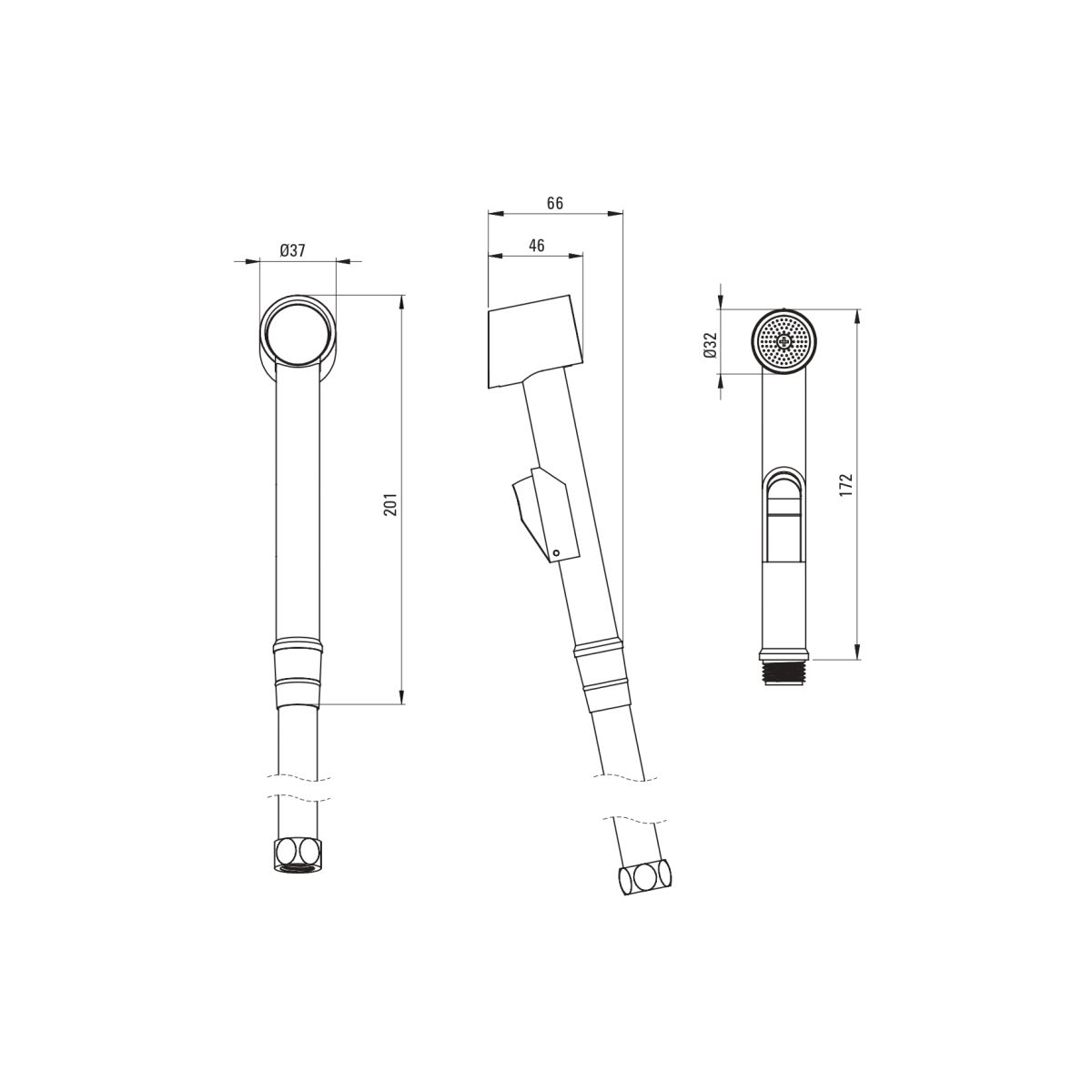 - Incluye: manguera de ducha, soporte de ducha, rociador tipo bidé