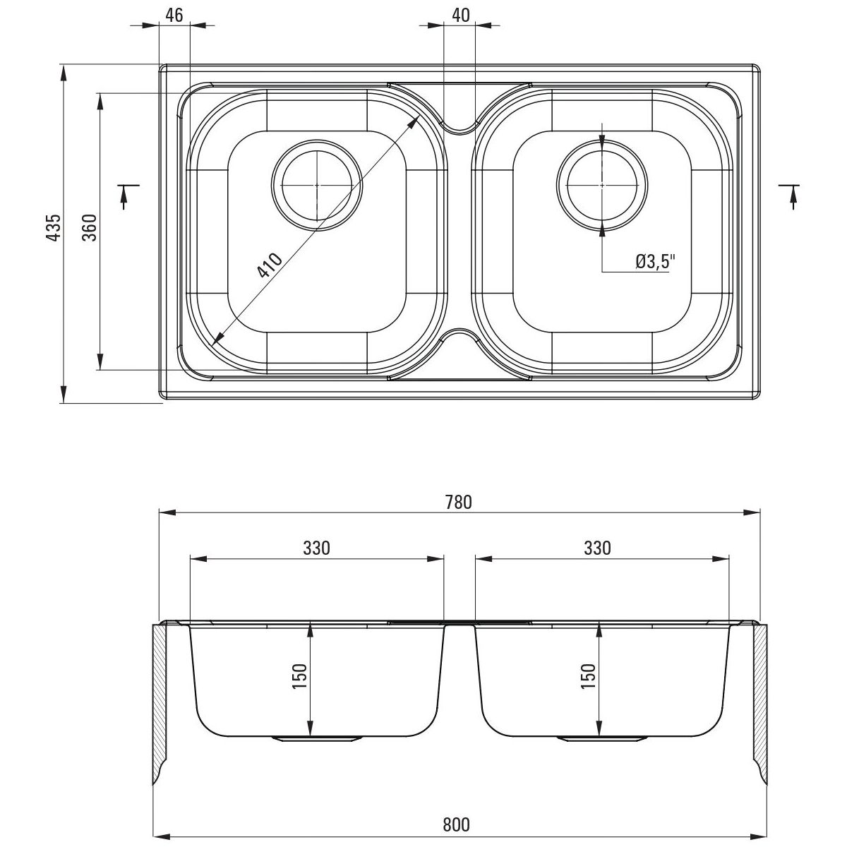 El fregadero Xylo llama la atención por su interesante acabado decorativo. Tiene dos cubetas idénticas y está fabricado en acero antibacterias. Es un modelo reversible y encastrado. También incluye un tapón manual.