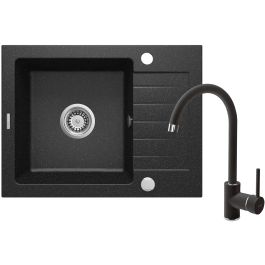 El fregadero de granito Zorba de 1 cubeta con una cubeta cuboidal espaciosa y un escurridor corto es un producto que quedará genial en cocinas minimalistas o escandinavas. El elegante color grafito contrasta a la perfección con una encimera clara, de piedra o de composite, o se funde perfectamente con el negro del entorno para conseguir un elegante efecto monocromo, mientras que el brillo metálico procedente de las partículas de aluminio introduce un elemento de extravagancia. El conjunto también incluye un llamativo mezclador de fregadero de cuerpo elevado con caño en forma de U en color grafito a juego, que acentuará el estilo minimalista. El fregadero que aquí se presenta es de granito y presenta todas las ventajas típicas de este material extremadamente duro y resistente al desgaste. Entre ellas, la resistencia a las manchas, los arañazos, los choques térmicos, las temperaturas de 250 grados y los impactos. Además, los fregaderos de la colección tienen propiedades hidrófobas, lo que significa que su superficie no sólo no deja pasar las partículas de agua, sino que las repele, lo que facilita mucho su limpieza.