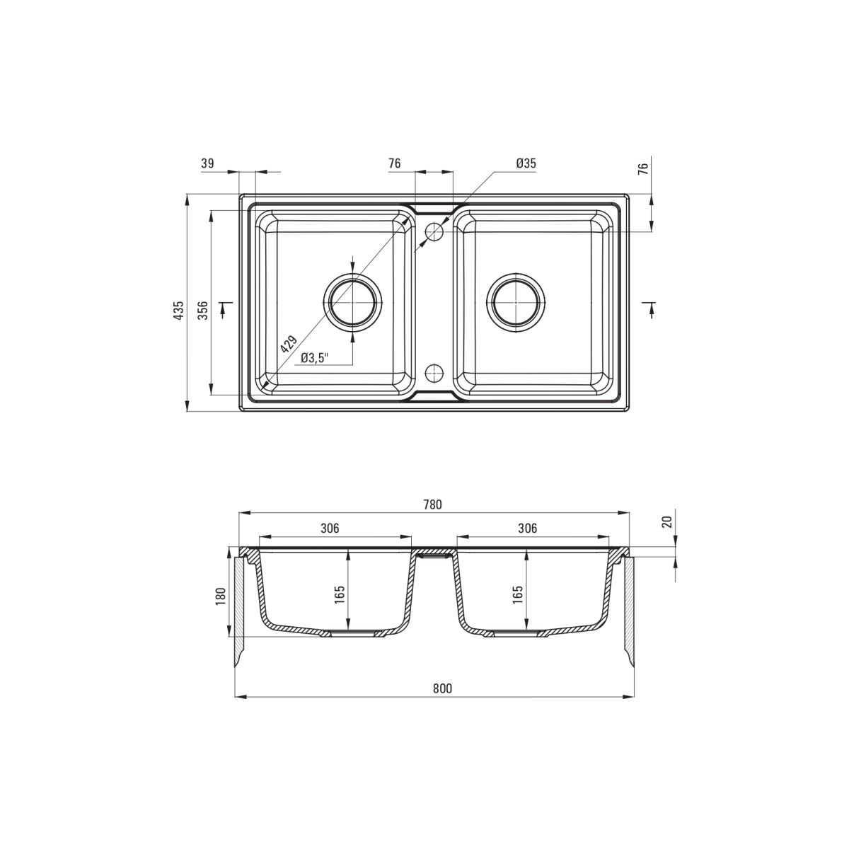 - diámetro del desagüe 3.5''