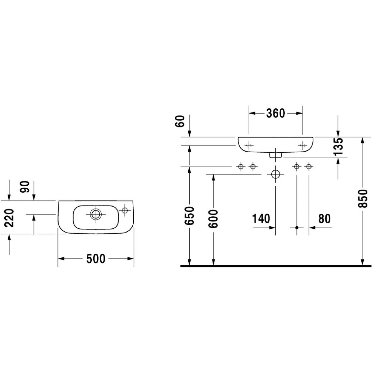 Duravit D-Code lavabo 50x22 cm semicircular clásico blanco 07065000082