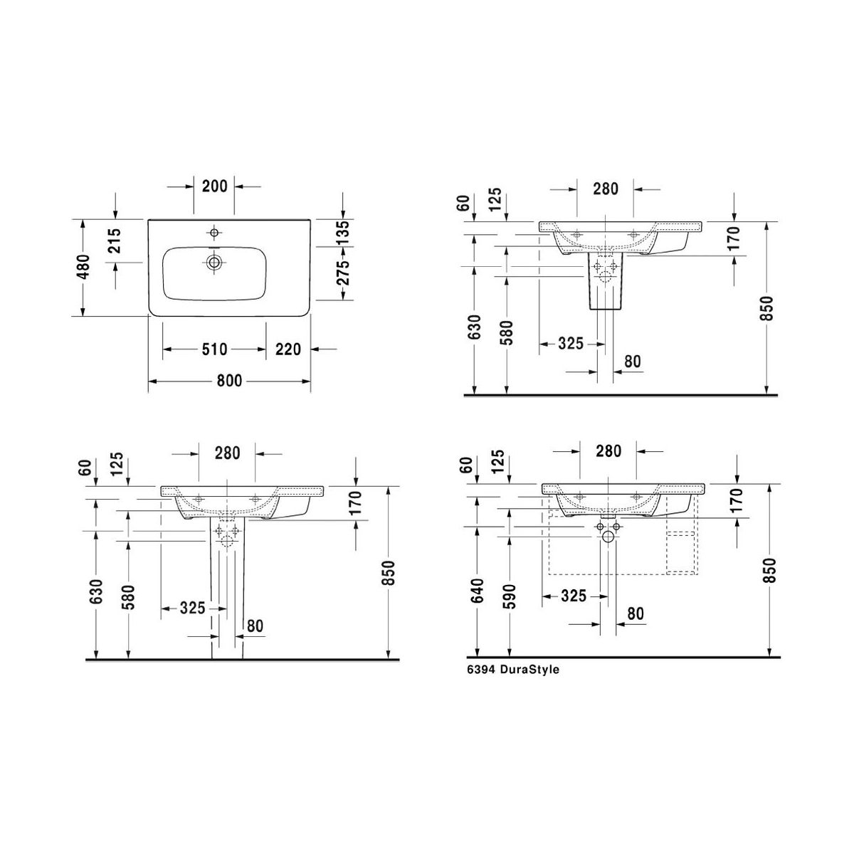 Duravit DuraStyle lavabo 80x48 cm rectangular clásico-para mueble-con encimera blanco 2325800000