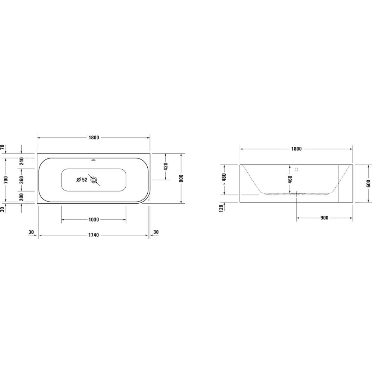 Duravit Happy D.2 bañera de esquina 180x80 cm oval blanco 700449800000000