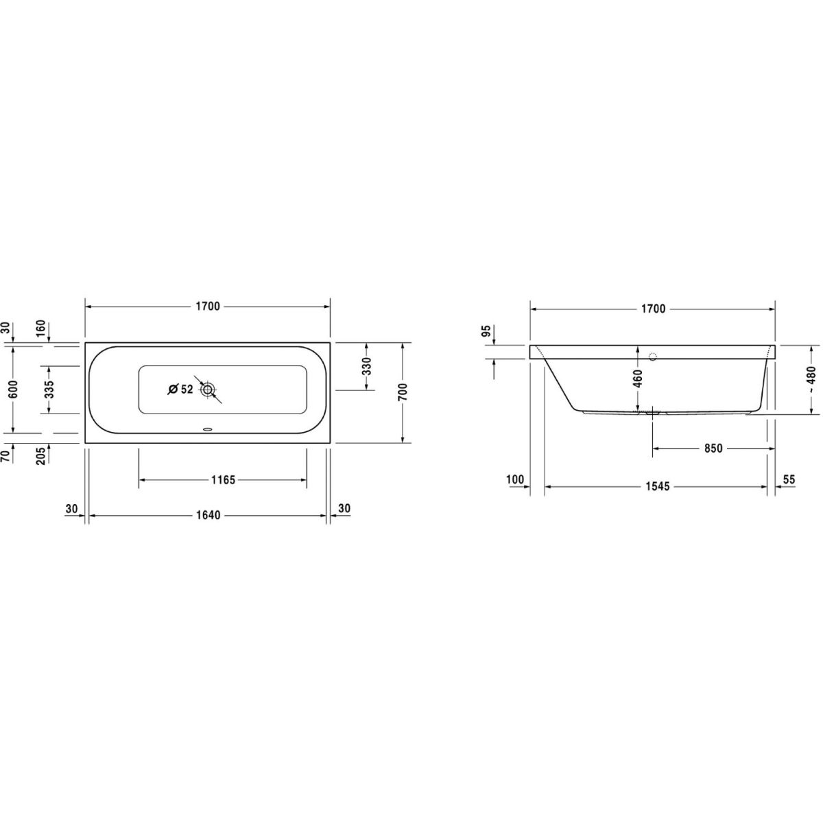 Duravit Happy D.2 bañera rectangular 170x70 cm blanco 700310000000000