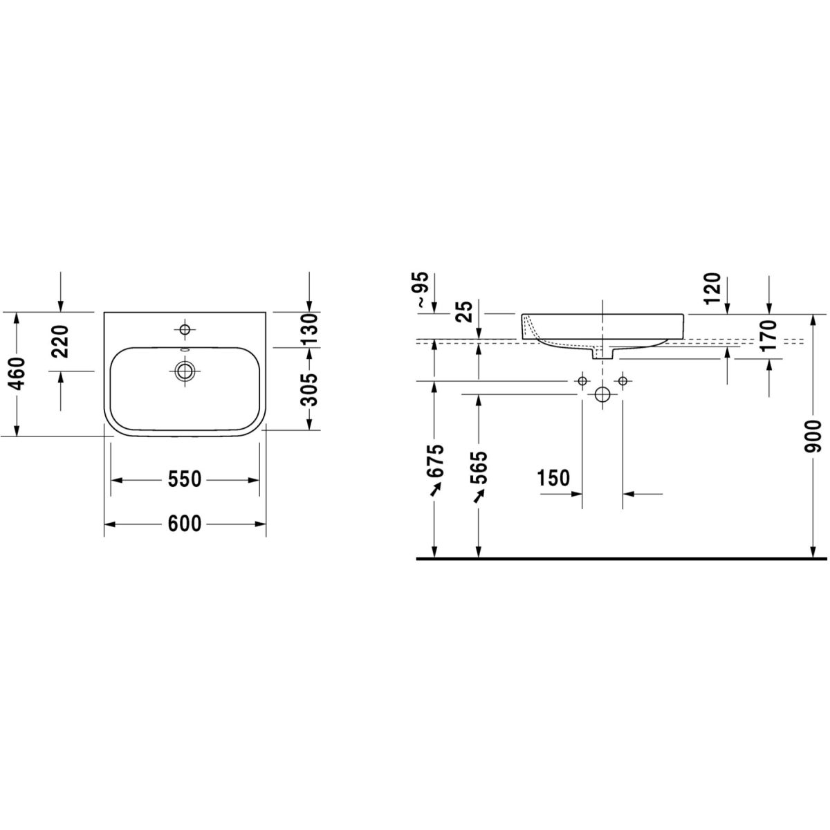 Duravit Happy D.2 lavabo 60x46 cm semicircular sobre encimera blanco 2315600000