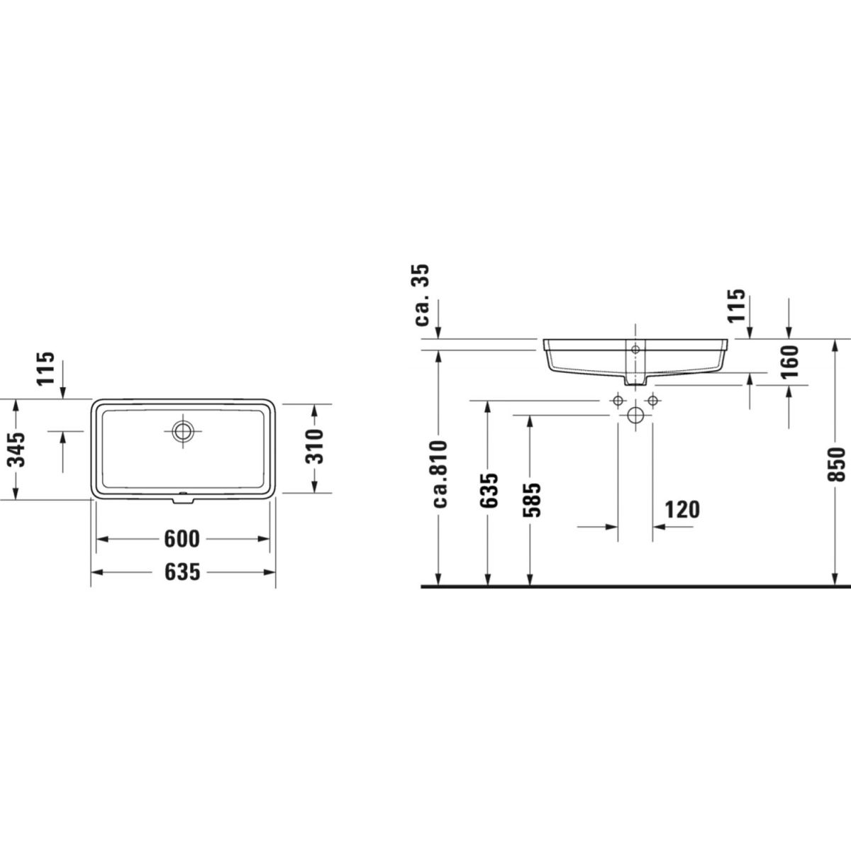 Duravit Vero Air lavabo 60x31 cm rectangular bajo encimera blanco 0384600000