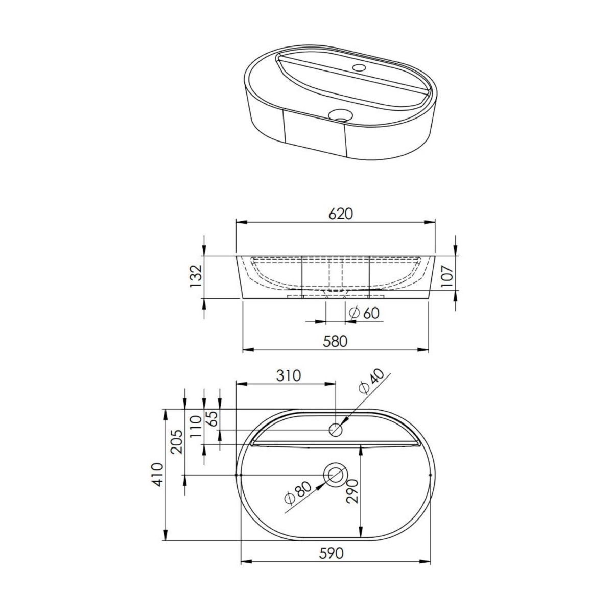Elita Babette lavabo 62x41.2 cm oval sobre encimera verde 146043