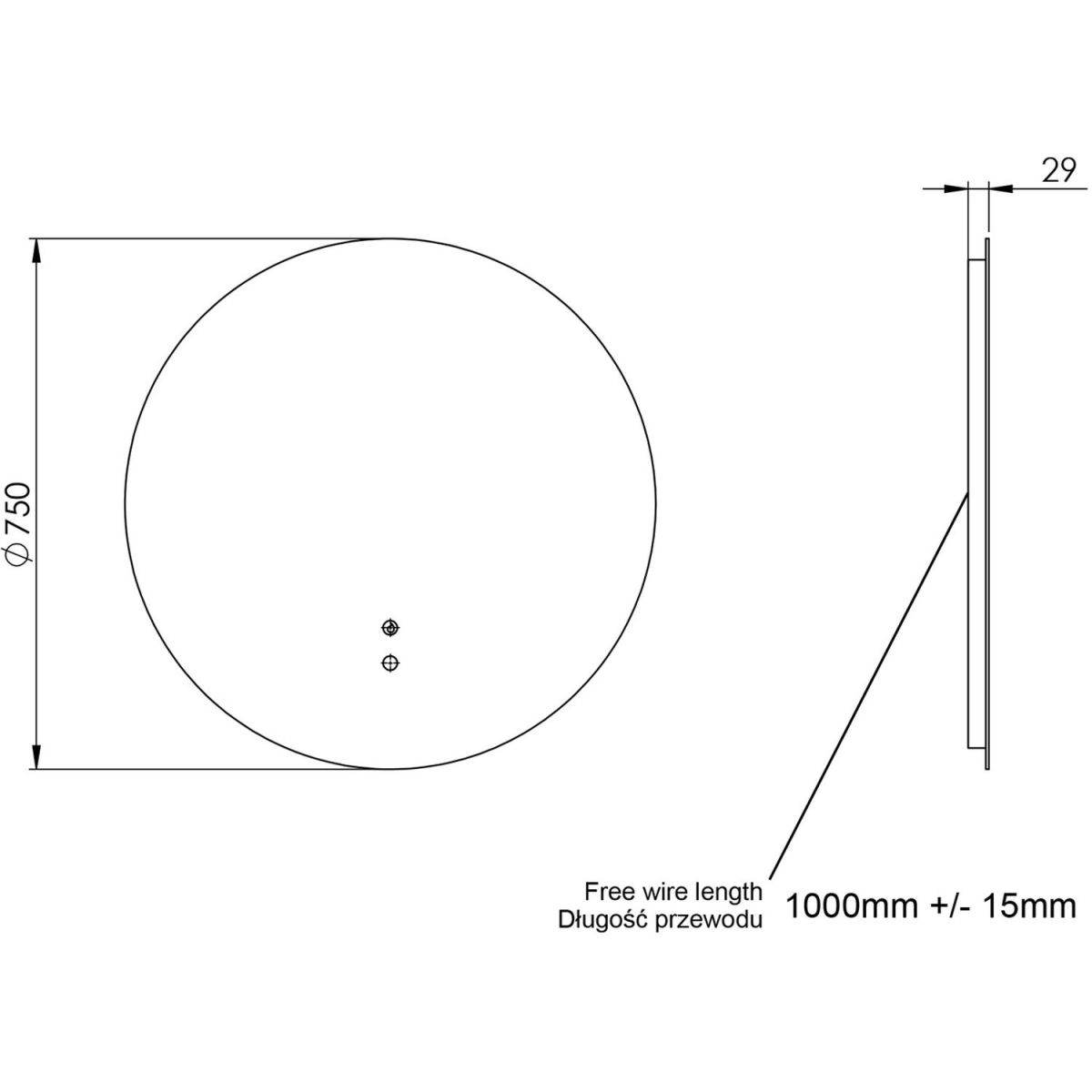 Elita espejo 75x75 cm circular con iluminación con lámina calefactora RE067639000010