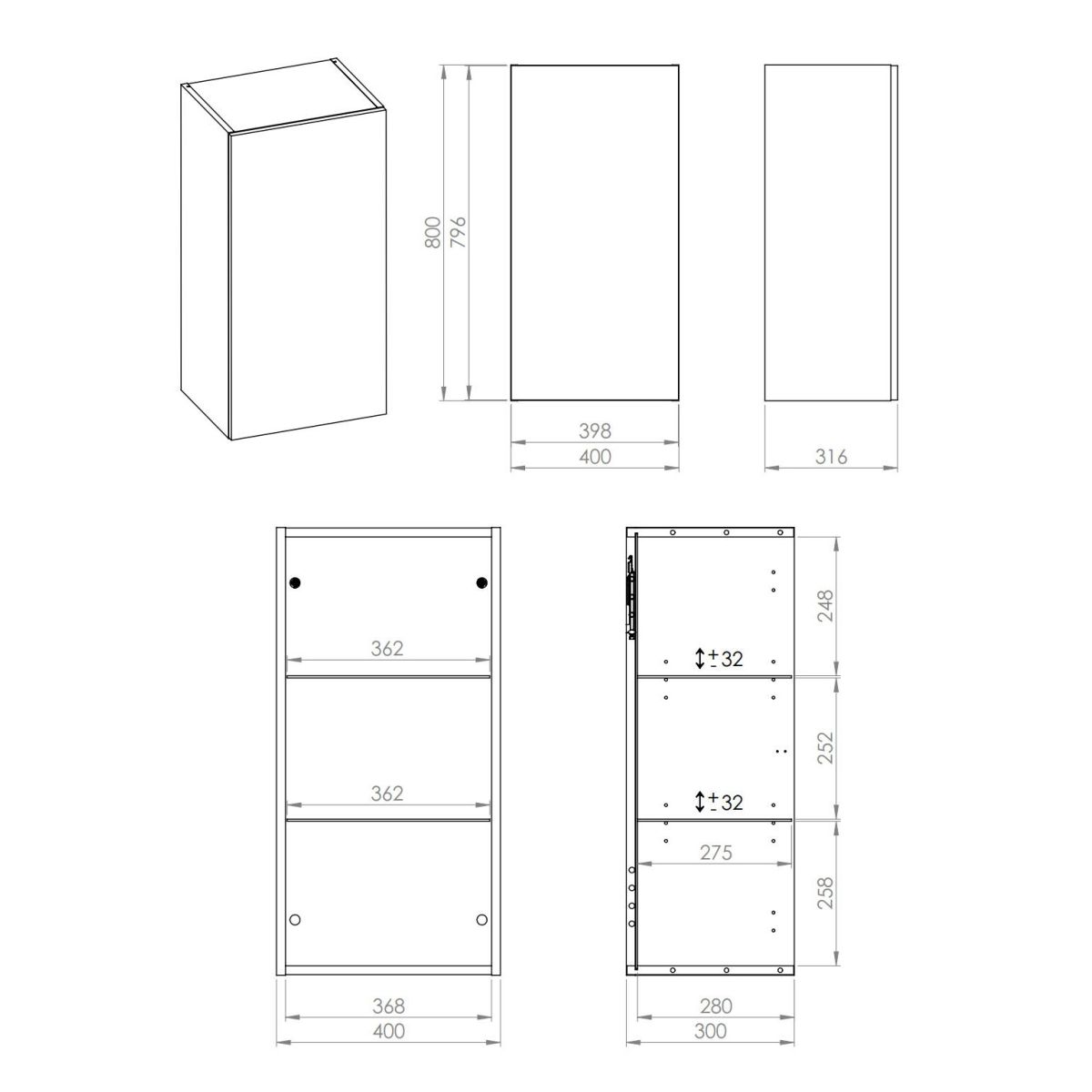 Elita For All armario 40x31.6x80 cm suspendido, lateral verde RE140400087010