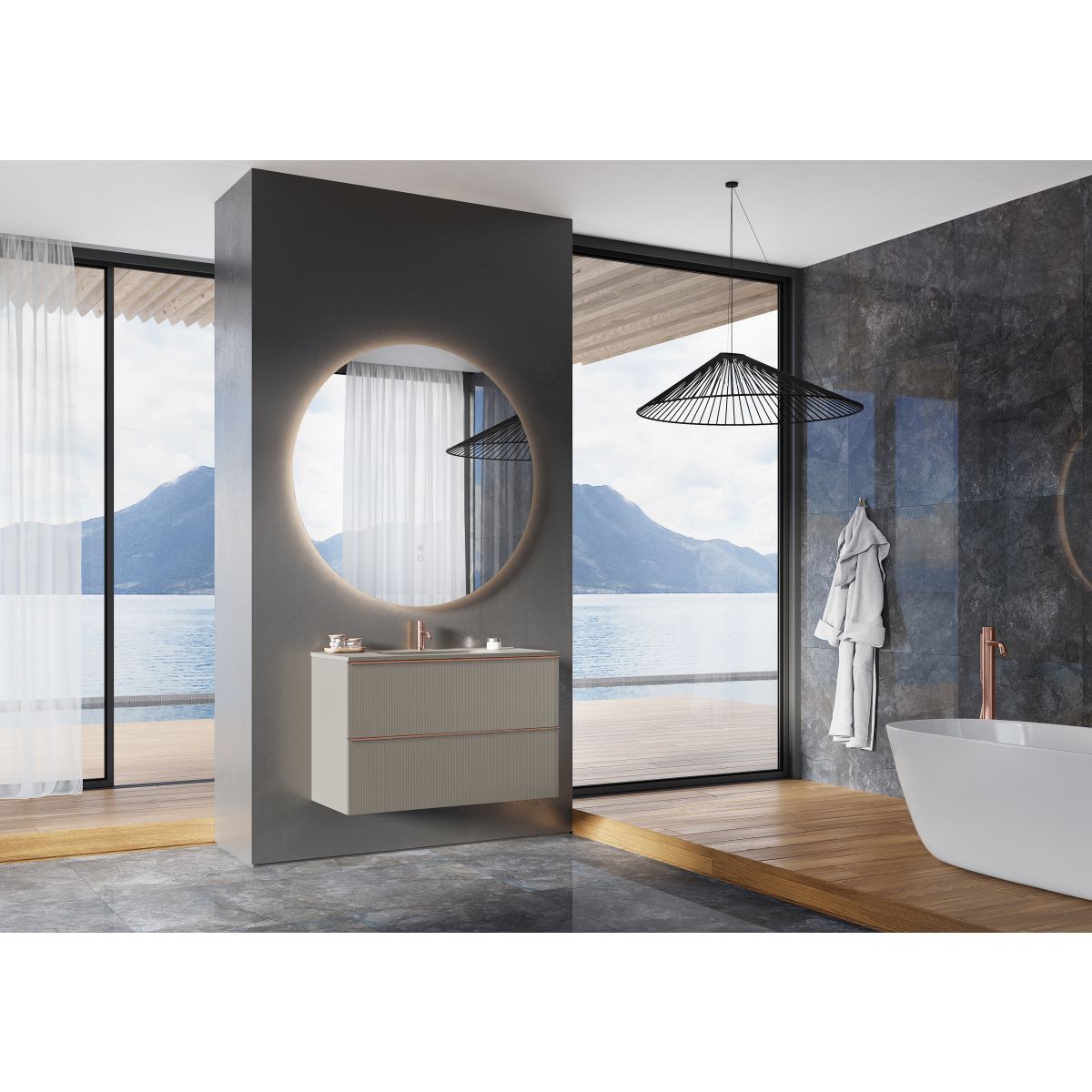 Los tiradores de lama Look son el complemento perfecto para los armarios de las colecciones Look y Soho. Su elegante acabado los convierte no sólo en un práctico complemento para el cuarto de baño, sino también en una decoración que añade un toque especial al interior.