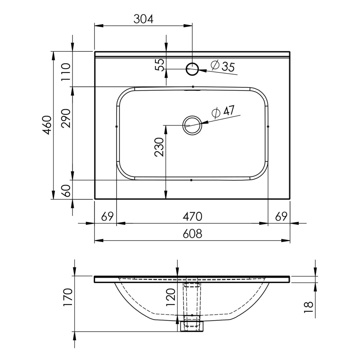 Elita Skappa lavabo 60.8x46 cm rectangular para mueble antracita RE040603066010
