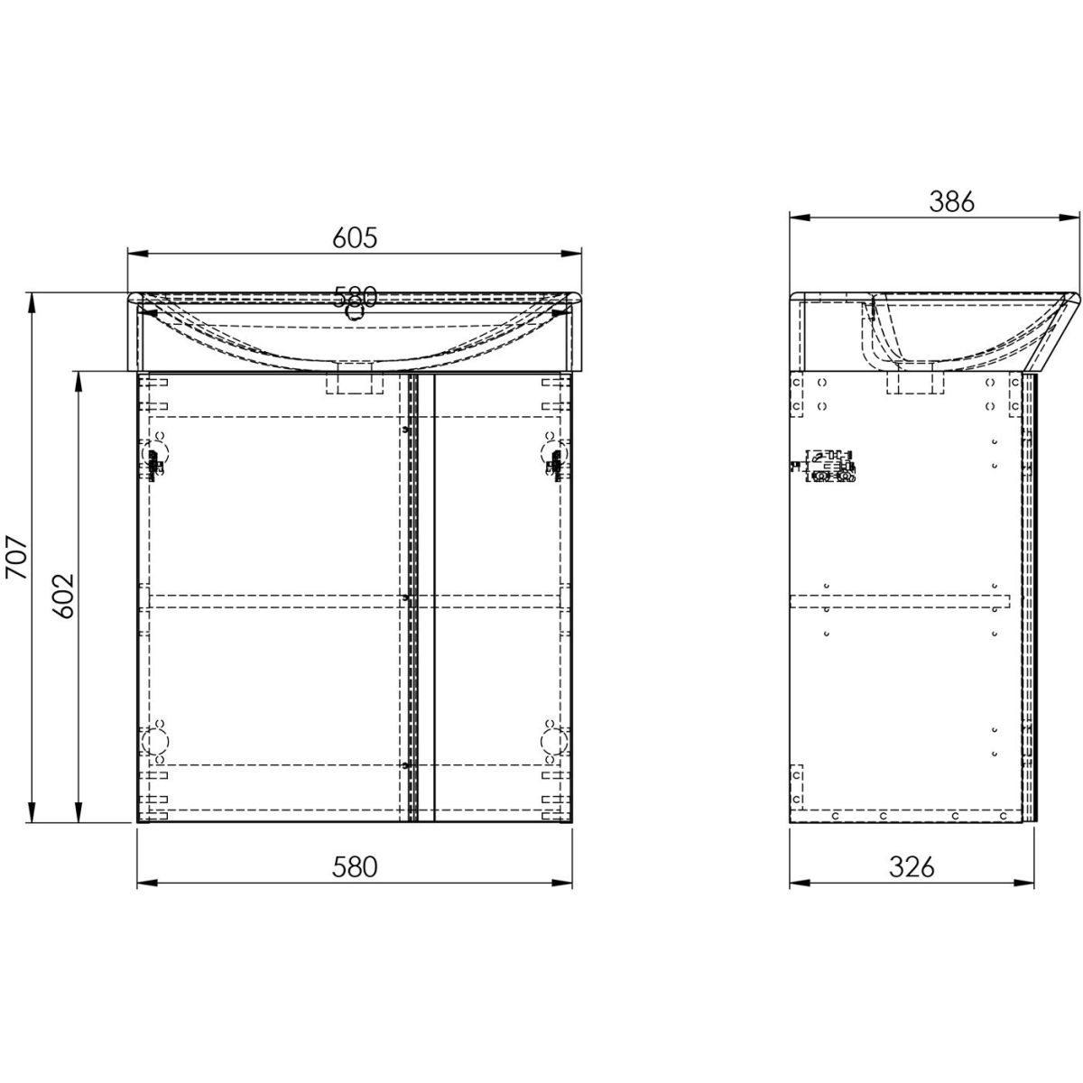 Conjunto Skye 60 cm, equipado con puertas asimétricas con sistema de cierre suave y estante regulable en altura. El conjunto está fabricado con materiales de alta calidad, el frontal y el cuerpo de tablero laminado en roble canela. El tirador de metal cromado está colocado verticalmente, a lo largo de toda la altura del mueble. El conjunto consta de un mueble de lavabo y un lavabo con cubeta perfilada de forma elegante. El conjunto queda muy bien con los armarios de la colección For All.