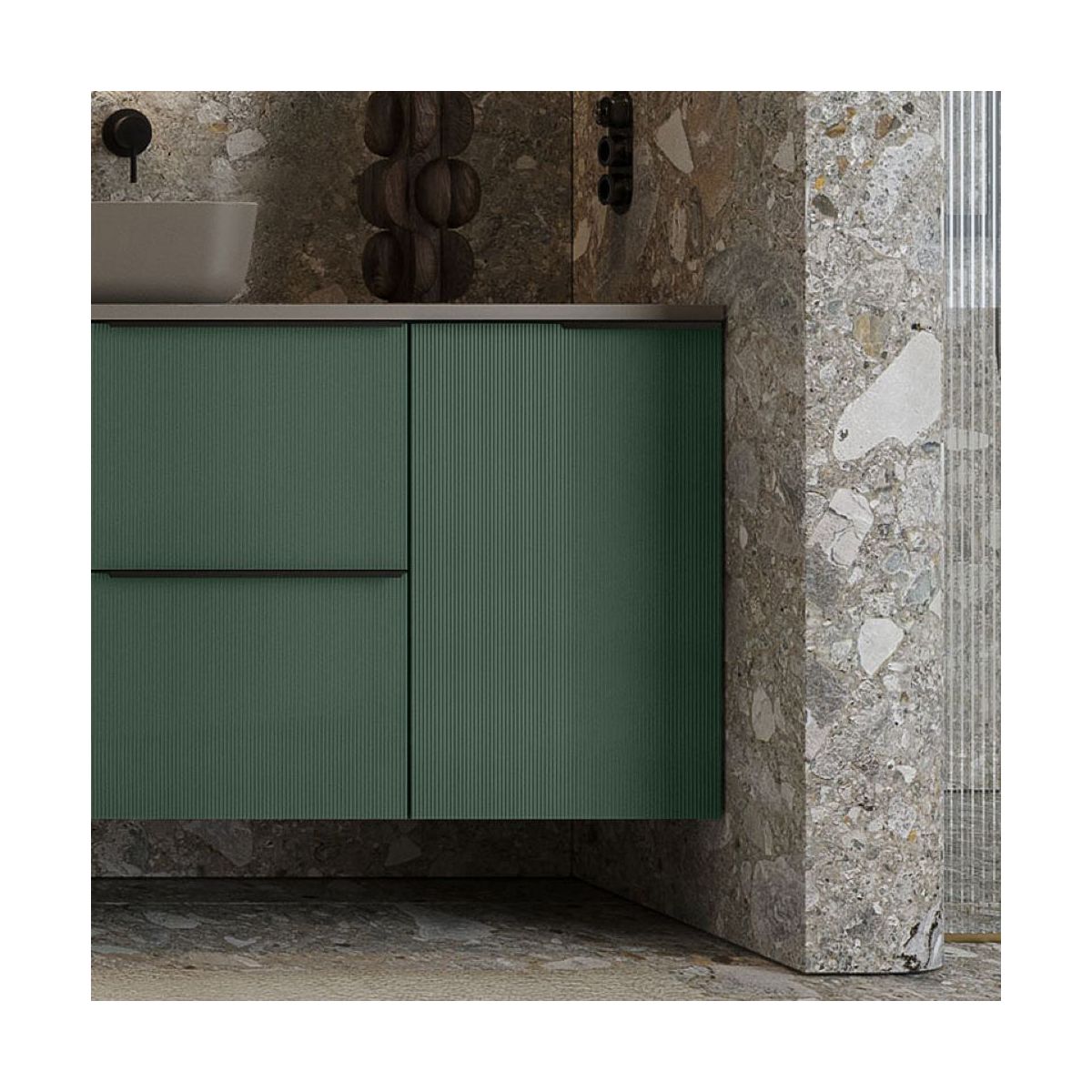 La colección Soho, inspirada en el estilo metropolitano, es una propuesta vanguardista para cuartos de baño modernos y con estilo. Los frentes acanalados de cristal confieren al mueble un aspecto inusual, diversificando y decorando extraordinariamente el espacio. El tirador de canto, perfectamente perfilado, complementa a la perfección el perfil del mueble.