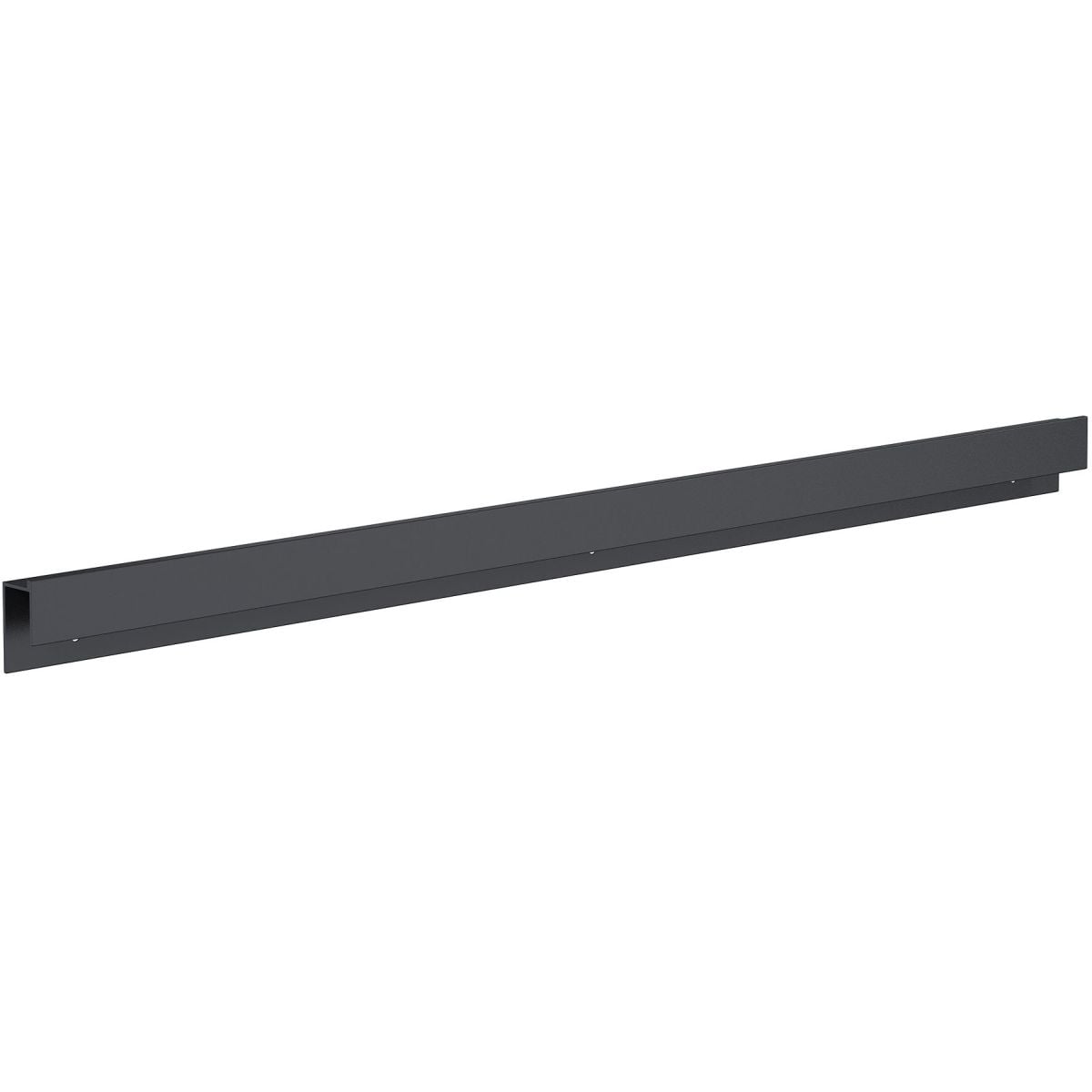 El encanto del conjunto reside en el tirador metálico negro, colocado verticalmente a lo largo de toda la altura del armario.