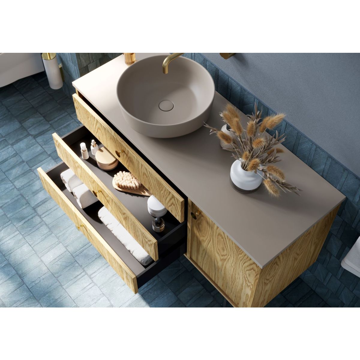 - color: fume (beige), a juego con el color de los lavabos