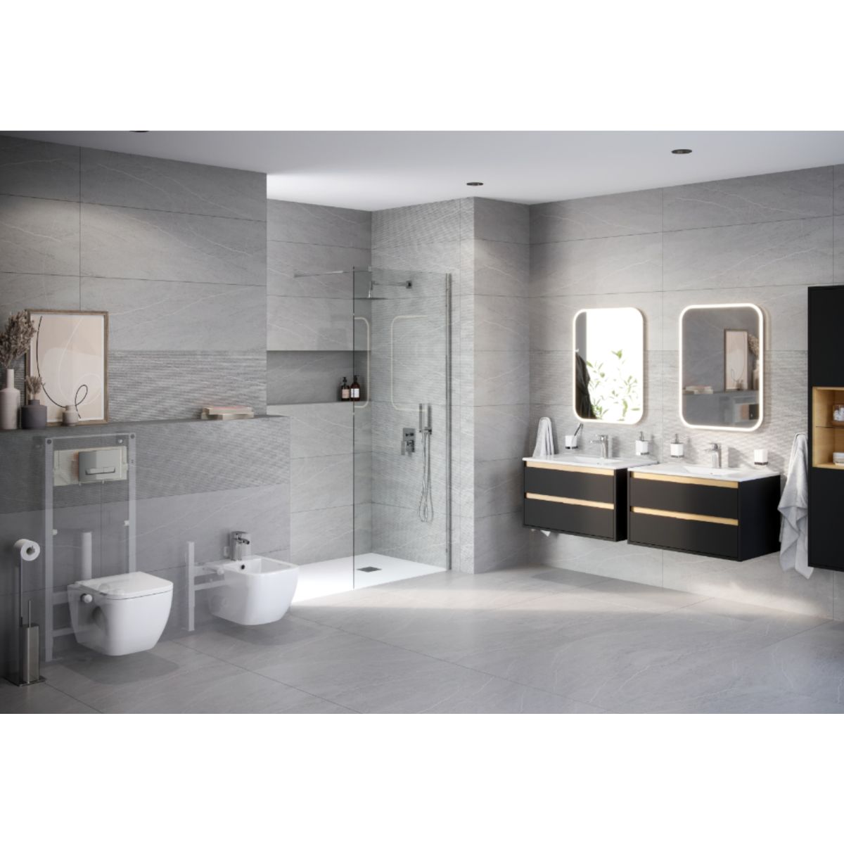 Las bandejas de ducha compuestas Arda organizan la zona de la ducha, protegiendo el suelo del agua y garantizando el correcto desagüe del agua hacia el sifón de la bandeja. Son muy bajos, por lo que pueden tratarse como «baldosas» y alinearse con el resto de baldosas del cuarto de baño, sin necesidad de rebajar adicionalmente el nivel del solado. Si es necesario, el plato de ducha también puede instalarse directamente sobre el suelo.