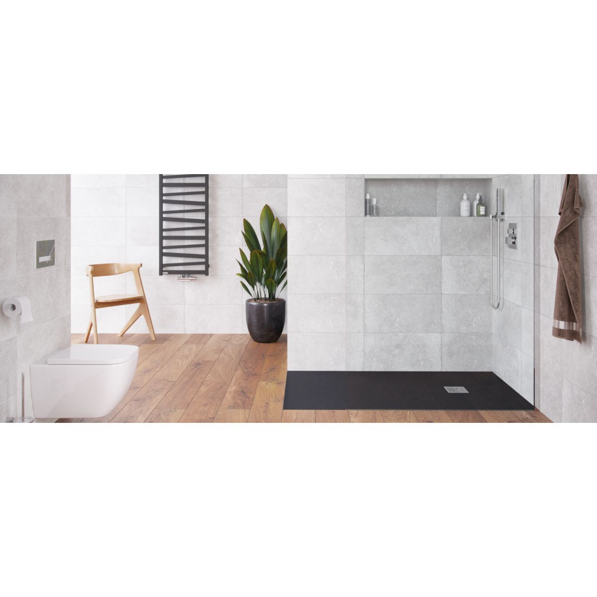 - plato de ducha fabricado con tecnología PLM - Poly Lite Minerals que contiene compuestos minerales